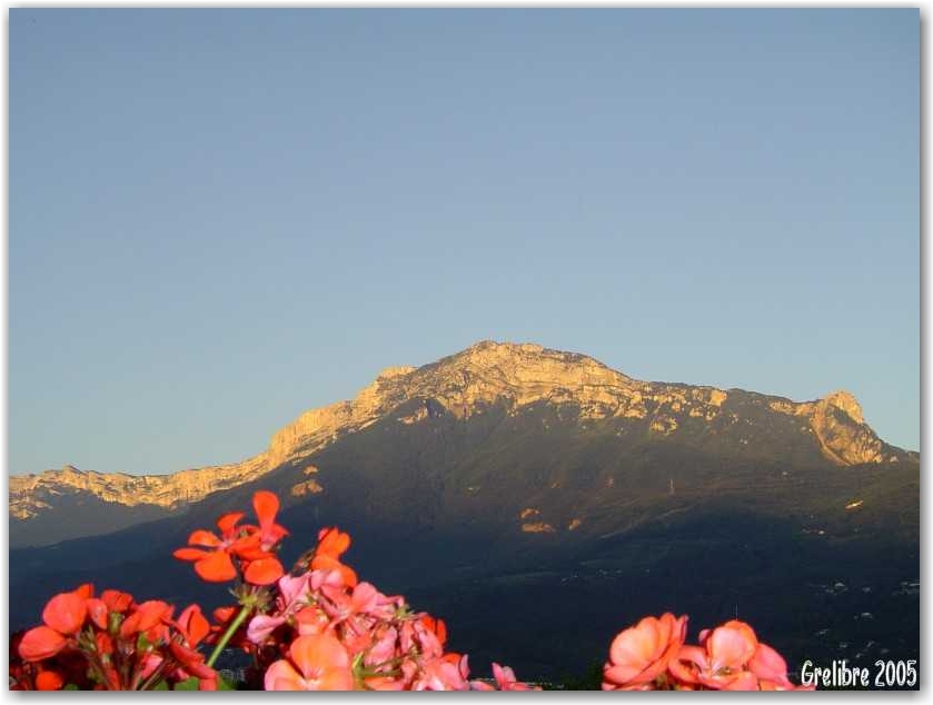 Photo du jour : Le Moucherotte avec en premier plan des Rhododendrons ?! (non, non, juste des Géraniums de balcon !!)