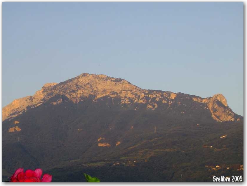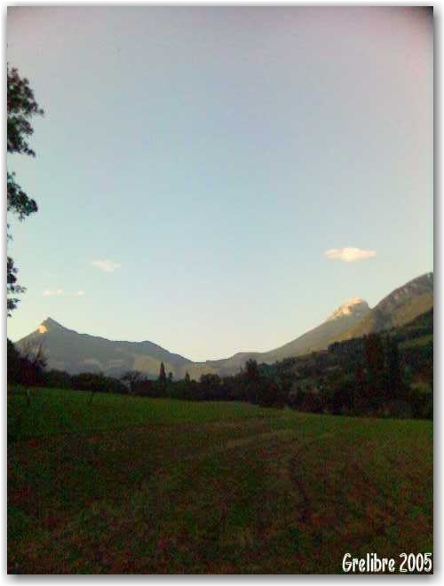 Hier soir au col de Clémencière avec à droite La Pinéa et à gauche Chamechaude point culminant du massif de la Chartreuse. Oui je sais, l’image est de mauvaise qualitée mais j’ai pris la photo avec mon téléphone portable car j’avais oublié mon numérique, que suis-je &#?£*@§?¤