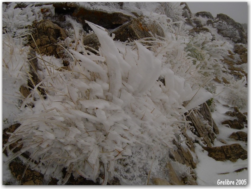 Epaisseur de plusieurs centimètres de givre sur cette brindille