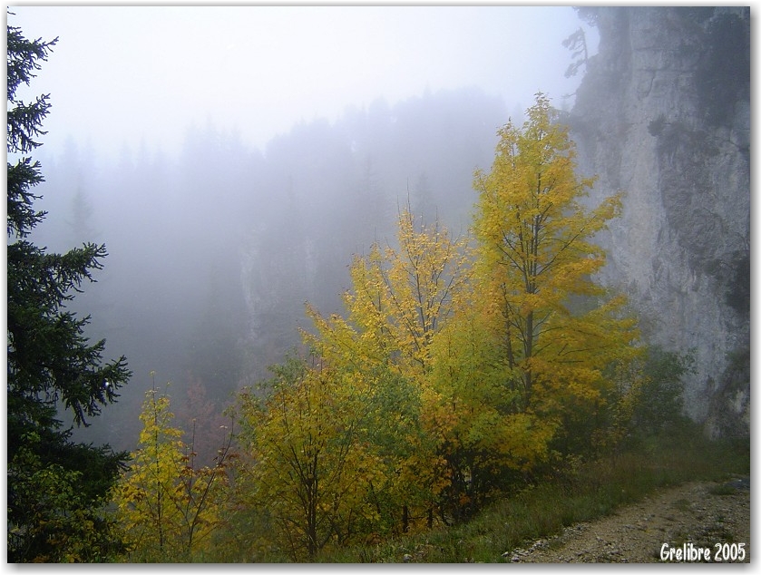 Je profites des belles couleurs d’automne des arbres qui n’ont pas encore eu le coupe de froid ! Nous sommes à 1500 mètres et la neige a remplacé la pluie. Il fait 1°C !