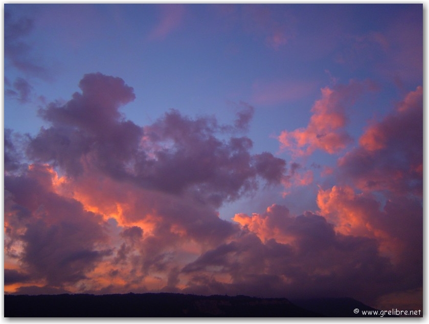 Beau contraste entre les nuages rougissant et le ciel bleu…