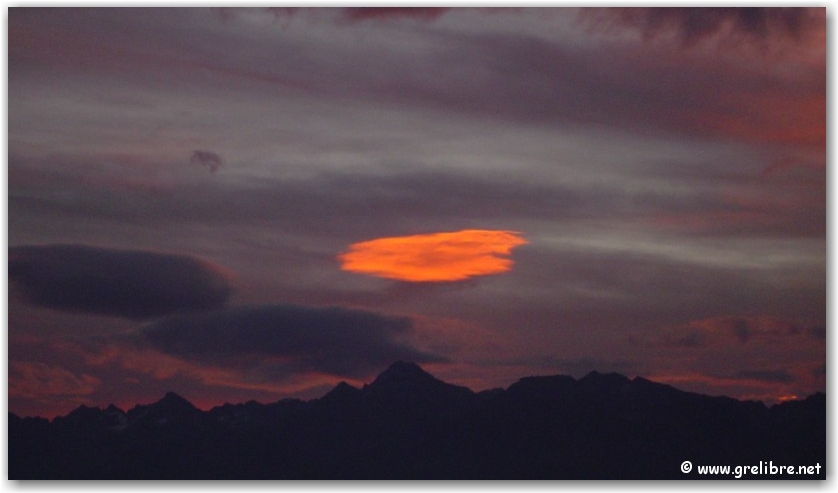 Aujourd’hui, une petite dégradation devait arrivée en milieu de journée mais pratiquement sans précipitations… Alors c’est vrai que ce matin le temps était assez clément et le lever de soleil a été même royal ! Par contre cet après midi, les nuages sont arrivés en nombre et les averses sont devenues génralisées sur toute la région… Ces petites précipitations qui devaient être éparses sont devenues assez importantes pour que ce soir nous atteignons par endroit près de 10 mm d’eau en vallée ! La température est restée tout de même assez douce avec un maximum de 22°C dans Grenoble avant la pluie bien sûr !!