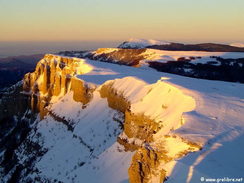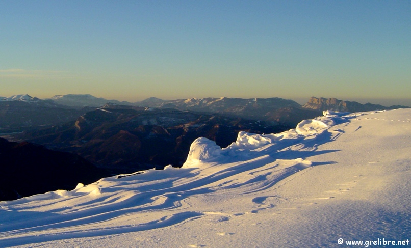 Nous remontons les pentes de skis de la petite station du Rousset (néanmoins très sympathique), ce qui nous permet de nous réchauffer rapidement ! Nous arrivons sur les crêtes juste à l'heure pour le lever du soleil…