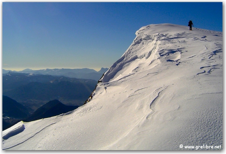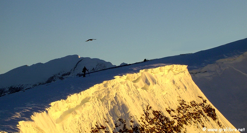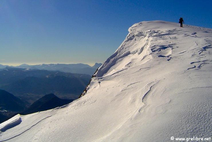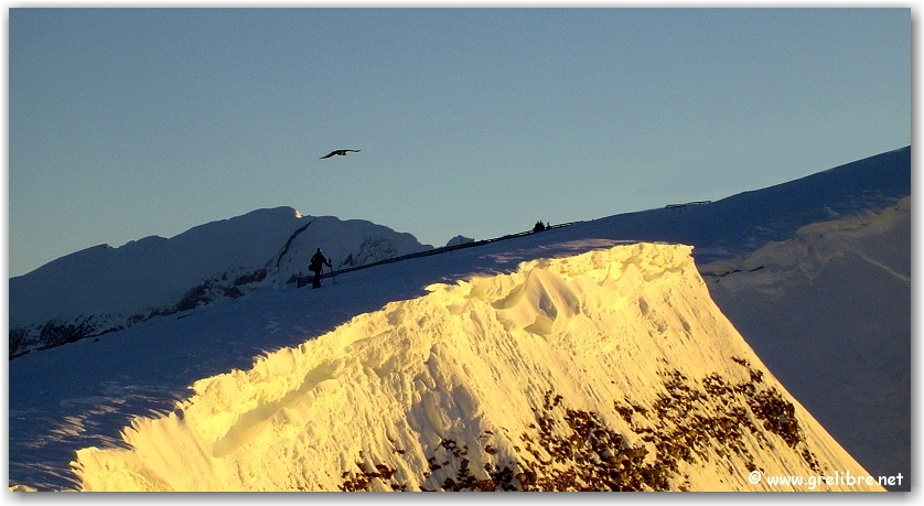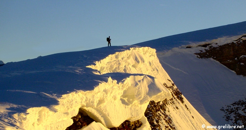 Il est préférable de garder une distance raisonnable avec le bord car les corniches sont monstrueuses et toujours fragiles même si tout est glacé !