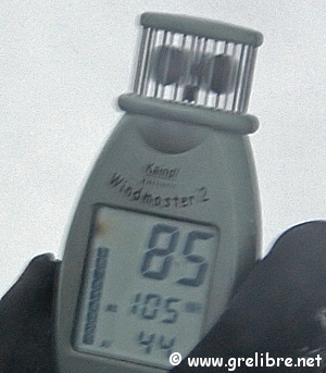 mardi 02 janvier : l’anémomètre à main indique 85 km/h en vitesse de vent instantanné et 105km/h en rafale !! Je vous laisse imaginer le windchill (température ressentie) avec une température de -4 à -5°C !