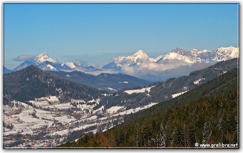 Le massif des Bauges magnifique avec Le Mont Colombier (2045 m), Le Trélod (~2160 m), La Dent d’Arclusaz (~2040m) et le Mont Pecloz (2197m)