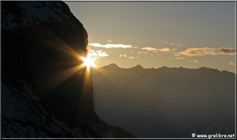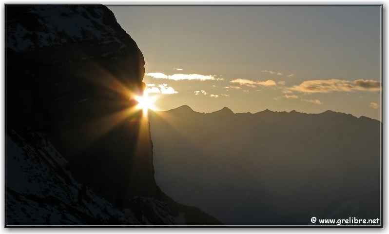 le soleil sur la crête en contrebas du sommet du Pravouta !
