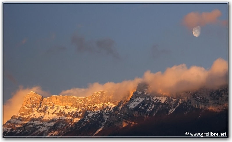 vendredi : Coucher de lune sur les crêtes du Vercors alors que le soleil se lève de l’autre coté !