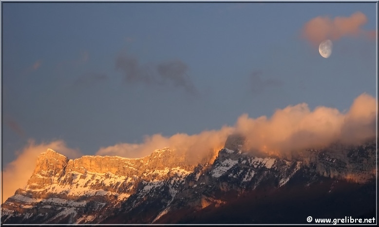vendredi : Coucher de lune sur les crêtes du Vercors alors que le soleil se lève de l’autre coté !
