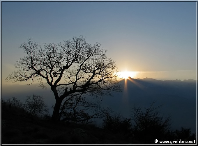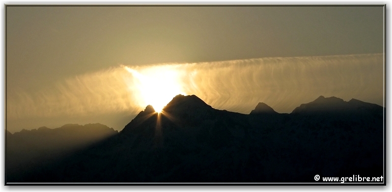le soleil sort derrière Belledonne et la Grande Lance de Domêne !