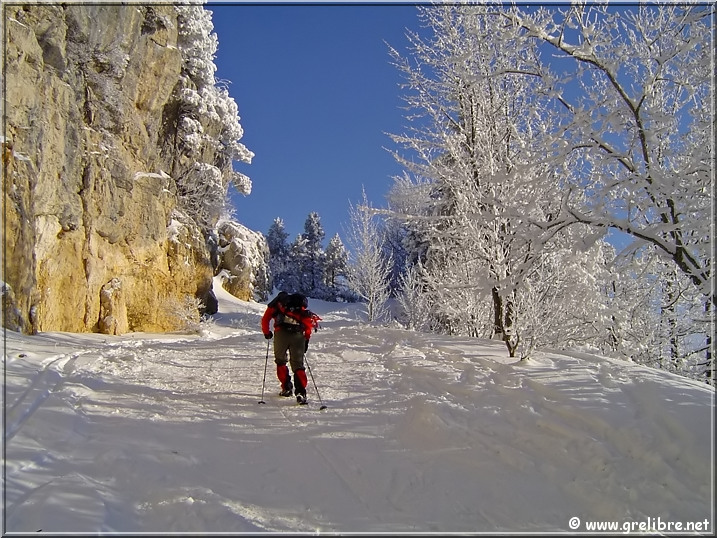 Fallait en profiter car le soleil réchauffait ces monuments et déjà les premiers blocs de neige s’écroulaient au sol !