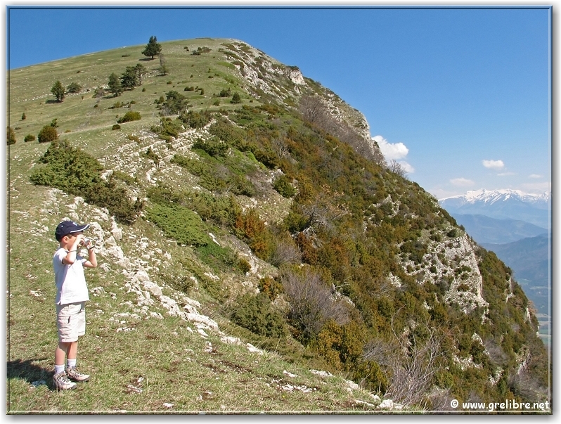 Photo du jour : Le fiston au Platary (trièves) entrain de prendre en photo le Mont-Aiguille… Il semble déjà passionné !!