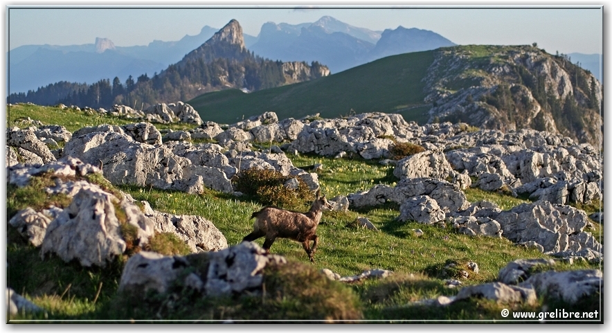 Je suis arrivé vers 18 heures et suis reparti à 21 heures. Soit 3 heures pour arpenter les pentes du Charmant Som… En gros je suis monté au moins 3 à 4 fois au sommet à la recherche de Chamois ! Ces derniers étaient bien présents mais ils sont actuellement très farouches ! Je n’ai pas réussi à les prendre avec la magnifique vue sur Belledonne, la Dent de Crolles ou le Mont Blanc ! Ce sera pour une prochaine fois. La lumière était magnifique au couchant (rarement eu une telle lumière).