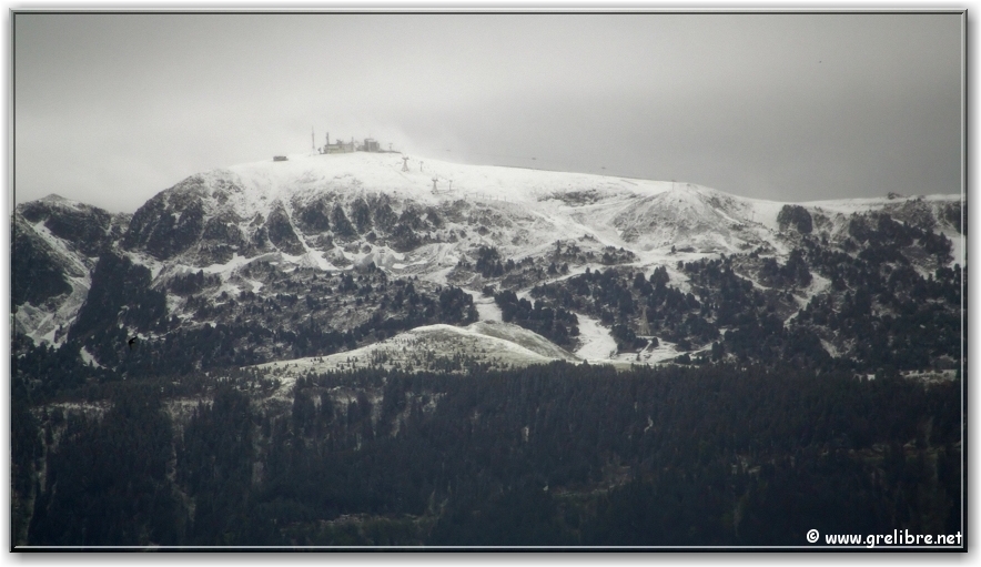 Citation… Monter, c’est s’immoler : toute cime est sévère.(Victor Hugo) Gre in Live… Observation du temps : N’hésitez pas à cliquer sur les photos pour les agrandir dans leur format original… Photo du jour : Neige sur Chamrousse ! Idem coté de Chamechaude (Chartreuse) ! Désolé pour la qualité médiocre ! Ce midi, une belle accalmie se manifestait sur le Vercors et Grenoble ! Les Sorties… en photos !! Pas de sortie familiale ce dimanche (enfants malades) mais sortie rapide matinale… En route donc pour faire la boucle Pas de l’Oeil – Col Vert. Le départ se fait du sympathique village de Prélenfrey. Petite rando… enfin si on peut dire puisque la boucle fait tout de même 12 kilomètres sur 1000 mètres de dénivelé ! Si il n’y avait que ça ! mais en plus il y avait le vent sacrément fort puisque sur les crètes et les Pas-Cols les rafales dépassaient les 100 km/h ! J’en ai mesuré quelques unes avec mon anémomètre à main pendant 15 minutes autour du Pas de l’Oeil dont la plus forte était à 110 km/h ! Sur les crêtes, il était difficile de tenir debout et il valait miuex ne pas s’approcher trop près car plusieurs fois des rafales me faisaient perdre l’équilibre ! Bref, un vrai foehn de plein Sud ! Lever de soleil de la Dent de Crolles jusqu’à l’Oisans Contraste saisissant lorsque le soleil éclaire les Deux Soeurs !! Le Pas de l’Oeil se trouve encore dans l’ombre Le Pas est toujours encombré d’une importante épaisseur de neige ! Le Vallon de la Fauge et Villard de Lans Au Col Vert, vue sur le Roc Cornafion En redescendant vers Prélenfrey Vue générale des Deux Soeurs et des arêtes du Gerbier Pas de sortie prévue avant un certain temps puisque je fais le viaduc (pont rallongé) ! N’hésitez pas à commenter cet édito en allant écrire un petit mot dans le livre d’Or du site http://www.grelibre.net Les infos… Info du jour : Indice Air: mardi: 4/10 = Bon Indice Allergique: Demain, mardi: 3/5 = moyen (pollens de graminés) Les prévisions… La suite ? Temps plus calme et moins humide mais dans la fraicheur ! Tendance météo : voir rubrique Tendance Météo sur http://www.grelibre.net IL Y A UN AN… Le 12 mai 2006 !! |