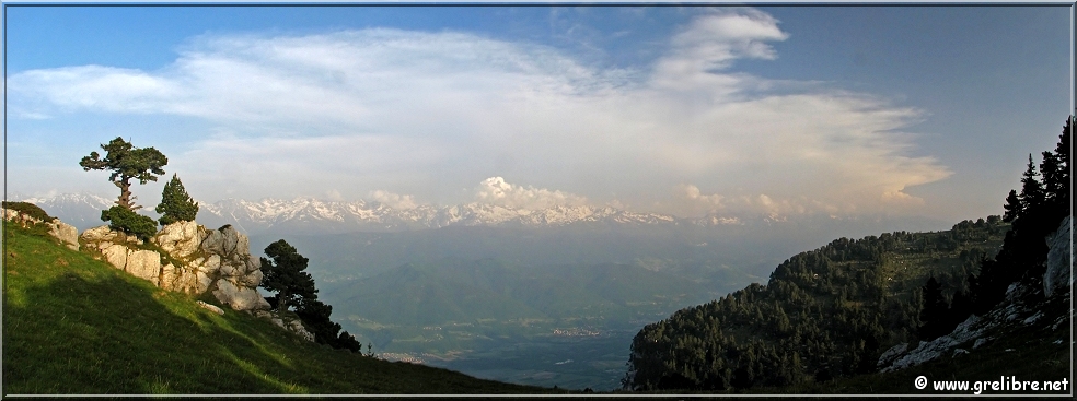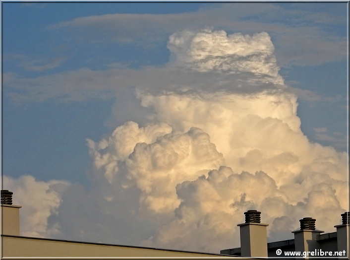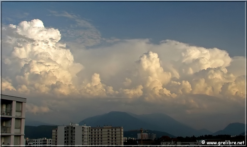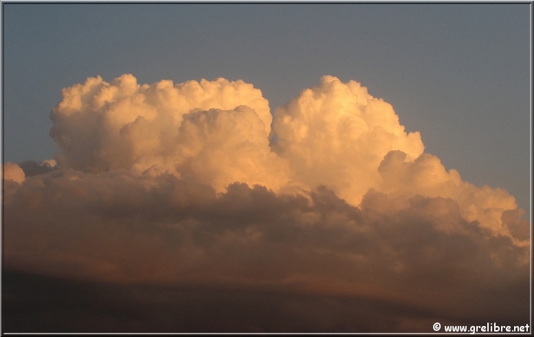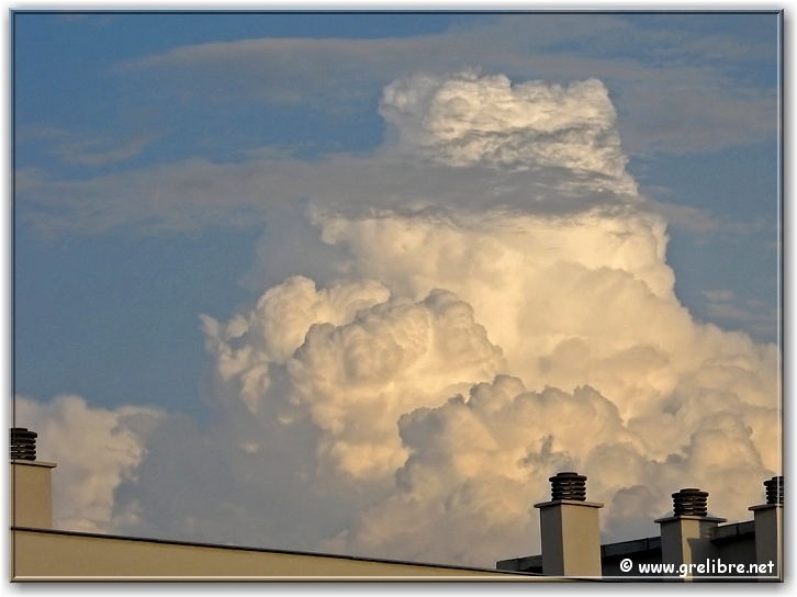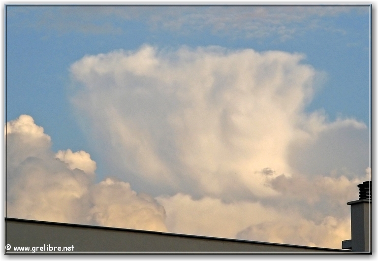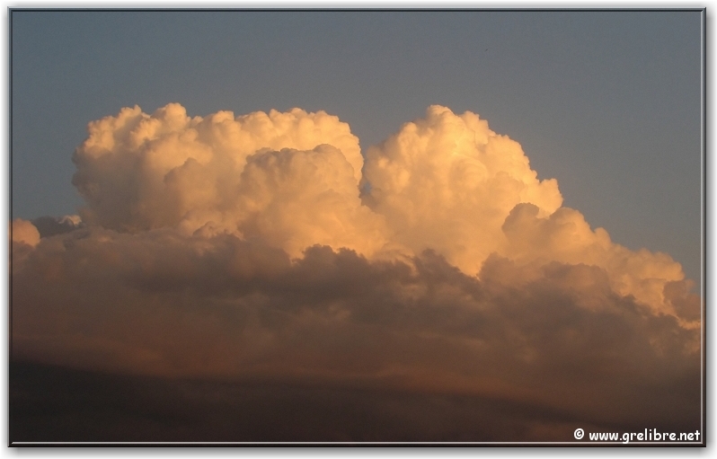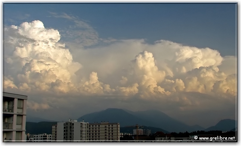 Citation… « La montagne est déconcertante. Son paysage est plissé et secret. Les mots et les habitudes butent sur le passage des cols » (Jason Goodwin, écrivain anglais) Gre in Live… Observation du temps : N’hésitez pas à cliquer sur les photos pour les agrandir dans leur format original… Photo du jour : De beaux bourgeonnements en cet fin d’après midi sur Belledonne mercredi matin, au lac de Bernin… Hier soir, au col de l’Alpe (suite plus bas) Dimanche, de retour de Reims, petite halte à Morestel Vendredi 17 mai… Reims et sa cathédrale vue depuis les coteaux chamenois ! Les Sorties… en photos !! Petit tour hier soir au col de l’Alpe pour une sortie sportive ! Je ne connaissais pas cet accès (juste celui par le cirque de Saint Même). La montée est très sympa à travers ces petites vires sans difficultés. C’est un endroit idéal pour faire un bivouac avec des enfants ! Je vais y songer ! Je pense que le meilleur moment pour y monter est le matin lorsque le soleil apparait ! A y songer aussi !! Hier soir, l’ambiance était plutôt brumeuse et quelques nuages sont mêmes venus taquiner les crêtes ! En tous cas, le fait marquant était bien évidemment la chaleur même à 1800 mètres ! Le col de l’Alpe et la croix marquant le point haut ! Les crêtes de la Chartreuse en premier plan et Belledonne au fond La partie Sud du Granier en Chartreuse Les nuages envahissent les crêtes vers 20h30 ! Petit extra ce soir avec les quelques magnifiques bourgeonnements au coucher du soleil sur le Sud de la région… Vers 20h, une cheminée s’élève parmis d’autres !! Vers 20h, de très belle formation apparaisse… Vers 20h30, ça bourgeonne sérieusement sur le Sud ! Vers 21h, avec le coucher de soleil, les nuages prennent de belles couleurs. Prochaine sortie : rien de prévu et certainement pas ce week end… alors peut-être un midi… N’hésitez pas à commenter cet édito en allant écrire un petit mot dans le livre d’Or du site http://www.grelibre.net Les infos… Info du jour : Indice Air: jeudi: 7/10 = Médiocre Indice Allergique: Demain, jeudi: 4/5 = élevé(pollens de graminés) Les prévisions… La suite ? Les orages devraient gagner sur le soleil !! Les températures restent douces voire chaudes jusqu’en fin de semaine ! Tendance météo : voir rubrique Tendance Météo sur http://www.grelibre.net IL Y A UN AN… Le 21 mai 2006 !! |