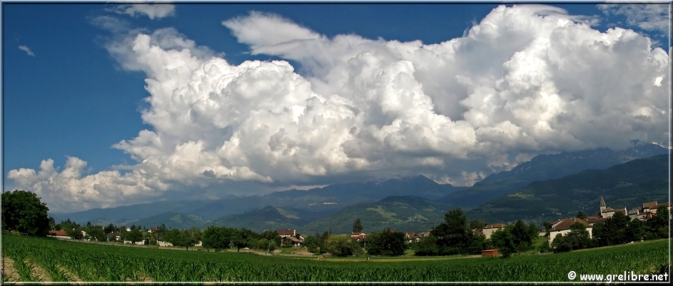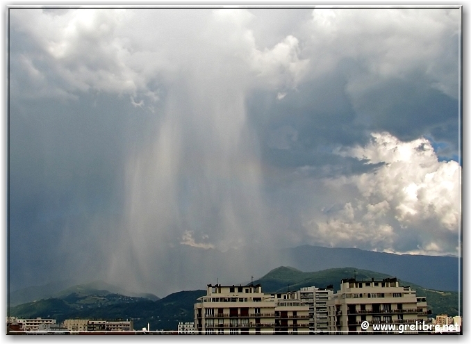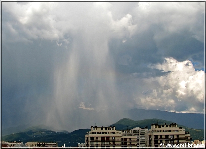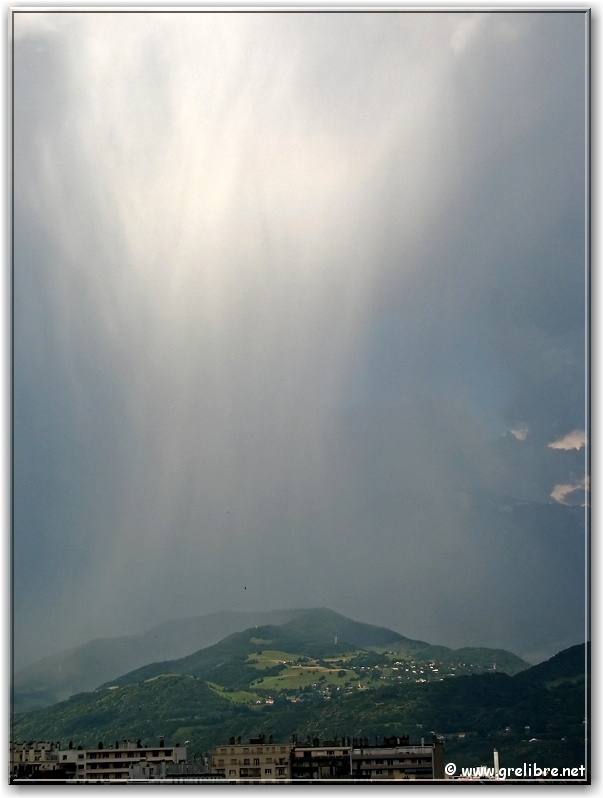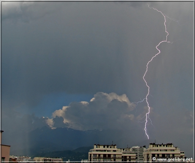 aujourd’hui, mercredi 13 juin : Belle et chaude journée ce mercredi sur les Alpes. La température a dépassé allègrement les 30°C dans plusieurs secteurs comme au Versoud avec 30,9°C ! De très beaux bourgeonnements se sont formés sur Belledonne dans l’après midi mais l’orage qui éclata sur Grenoble, arriva du Sud de l’agglo en se formant pratiquement au-dessus de Grenoble. Des averses parfois fortes ont eu lieu notament sur Saint Martin d’Hères (Chez Stan, salut !) avec à certains endroits des averses de grèles.