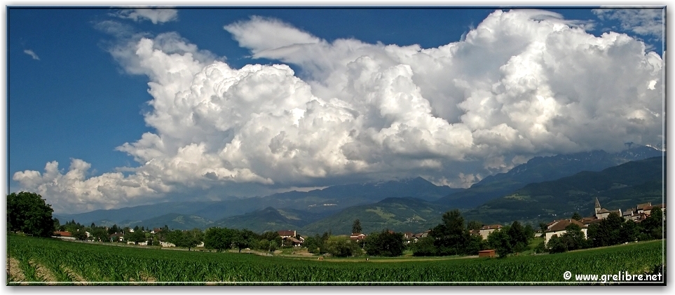 Aujourd’hui : temps superbe jusqu’en milieu de journée puis des nuages bourgeonnant ont essayer de s’infiltrer par l’Est mais en vain ! La température a dépassé les 30 avec 31 à 32 dans Grenoble.