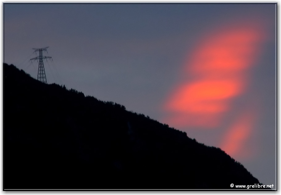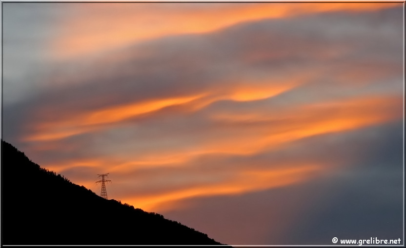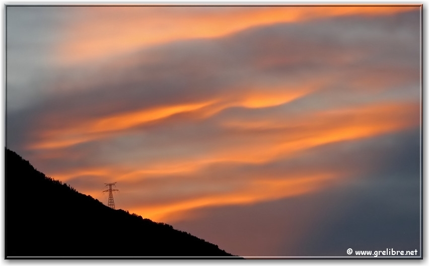 aujourd’hui, lundi 18 juin : Journée à nouveau assez chaude avec près de 29°C de maxi dans l’agglomération. Les voiles de nuages ont joué à cache cache avec les périodes de ciel bleu. Quelques cumulus ont tenté de bourgeonner pour rapidement disparaitre avant le soir. Ce soir le ciel est bien voilé mais à l’instant où j’écris ces lignes, le ciel vient de s’enflammer !
