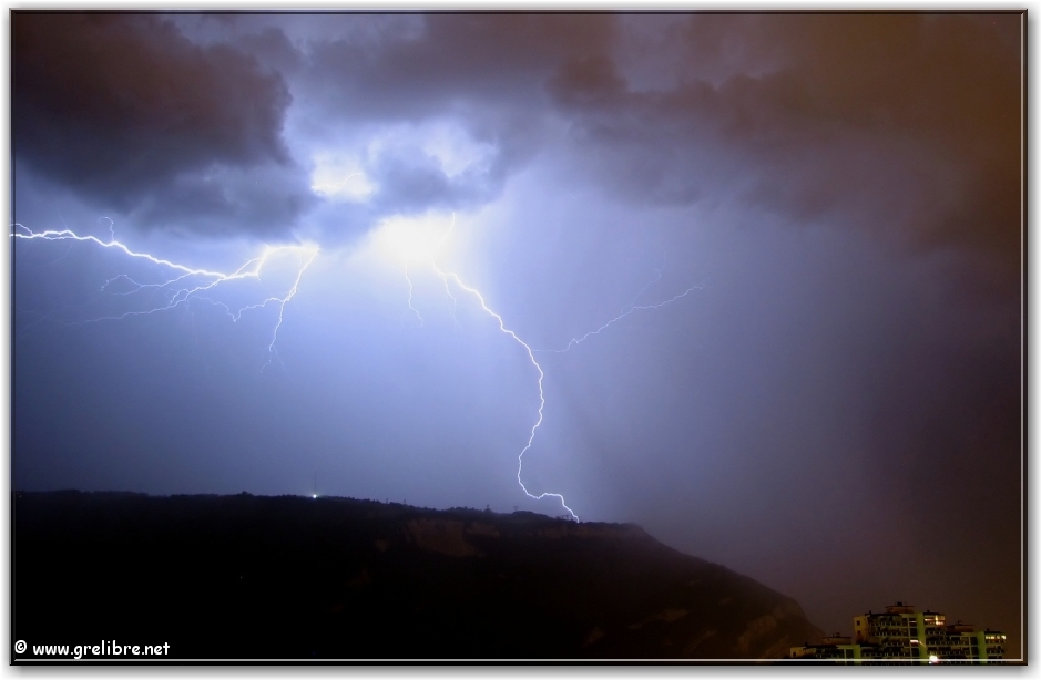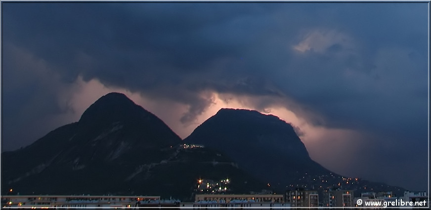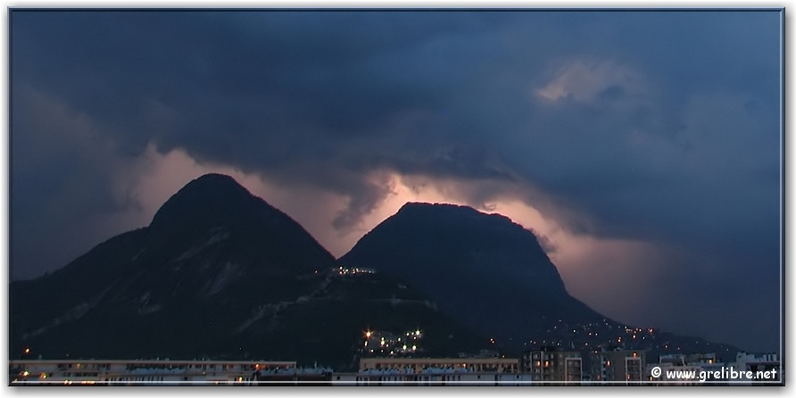 Ce soir, éclair dans le massif de la Chartreuse où l’orage semble particulièrement violent avec probablement de la grèle ! (pas de meilleur photo ! Comme quoi, ce n’est pas si simple !!)