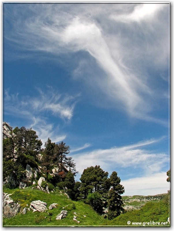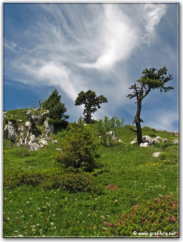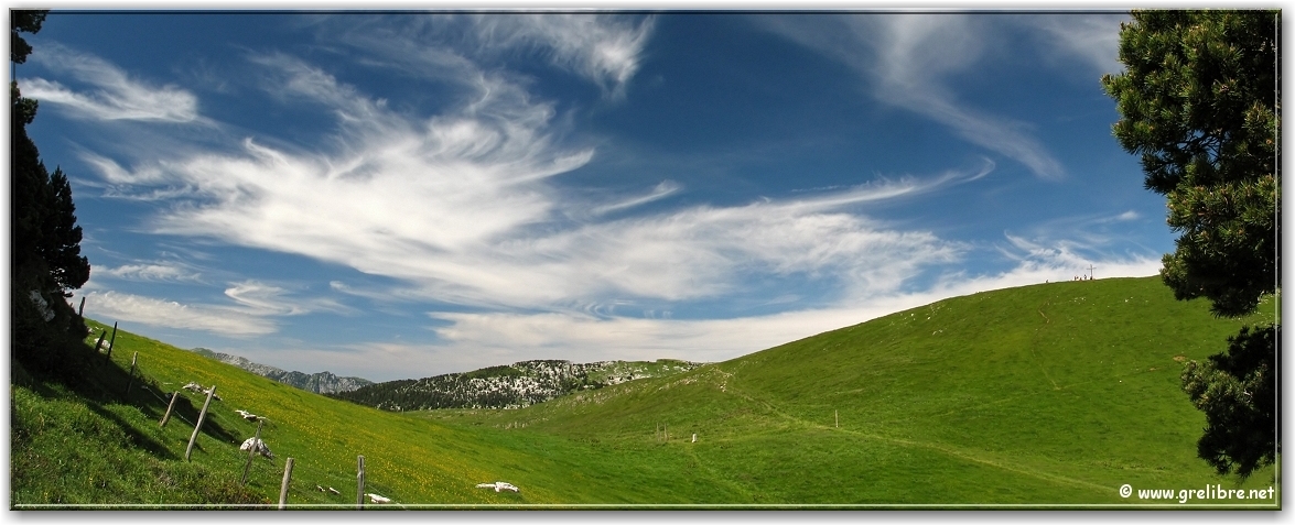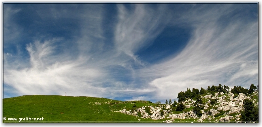 Ciel avec des voiles supers photogéniques au col de l’Alpe (croix sur la droite)