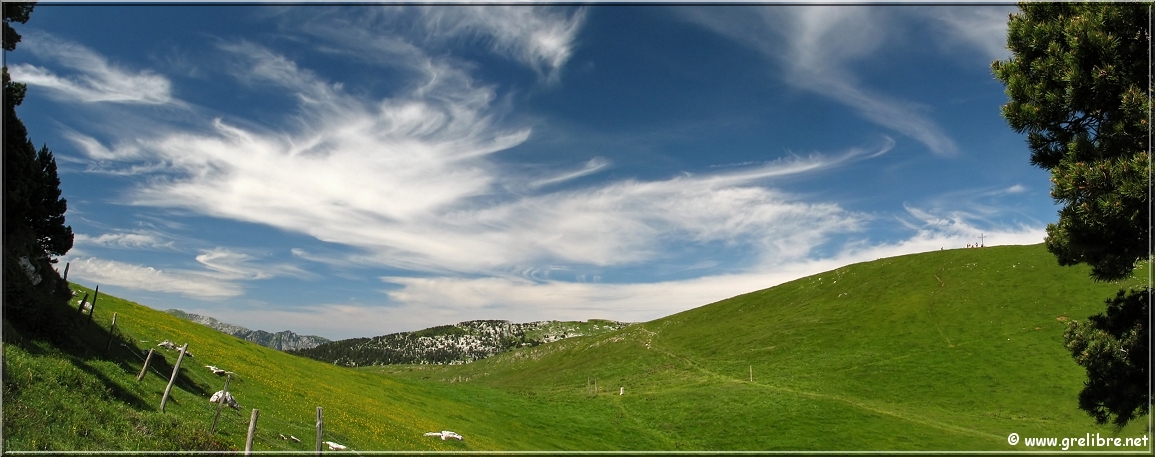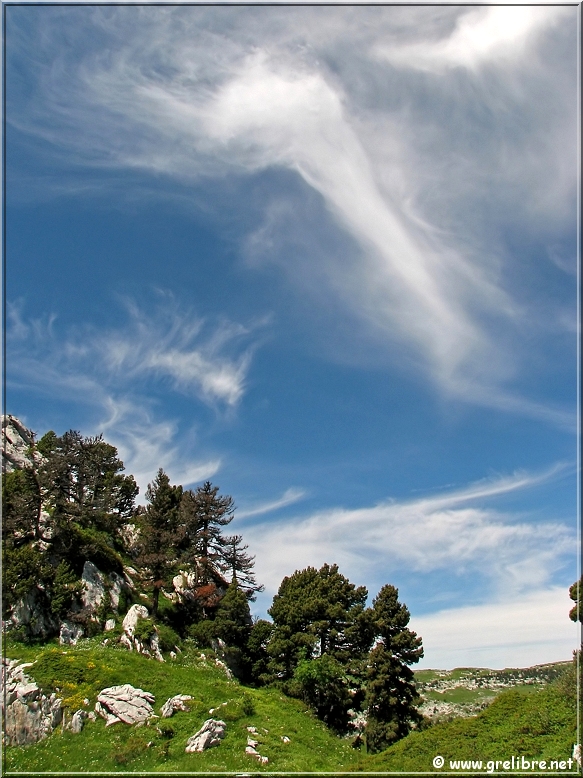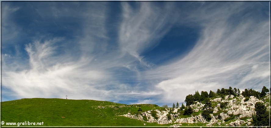 Ciel avec des voiles supers photogéniques au col de l’Alpe (croix sur la droite)