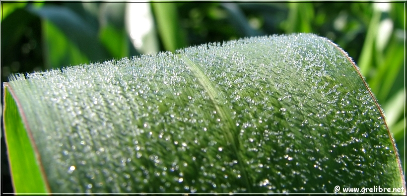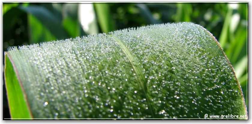 jeudi matin : petite rosée sur les feuilles de maïs