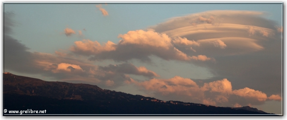 aujourd’hui, mercredi 15 août : hormis le fait que le ciel était couvert au réveil, la journée fut très belle et très chaude. En effet, le foehn s’est levé l’après midi faisant grimper la température à plus de 35°C !! Ce soir de beaux lenticulaires se sont formés sur les Alpes…