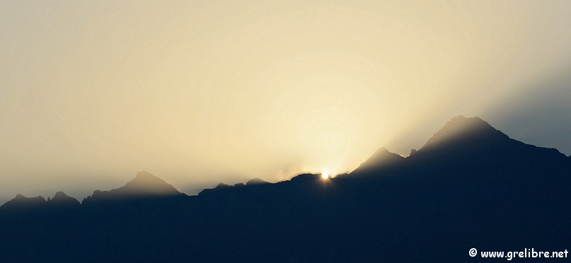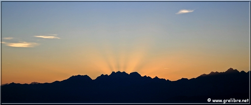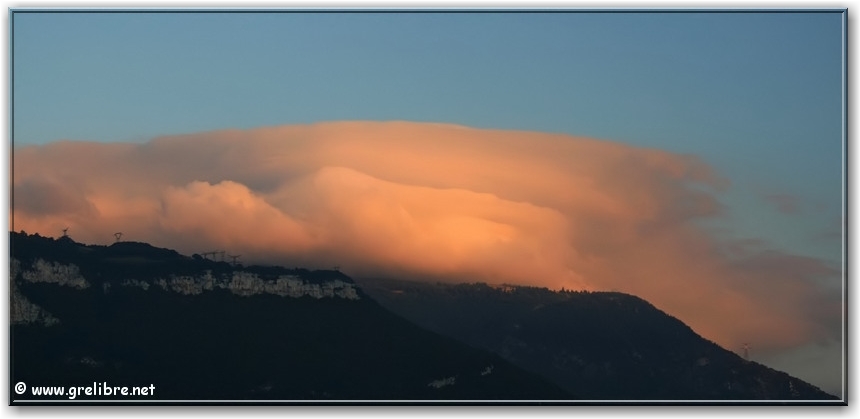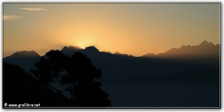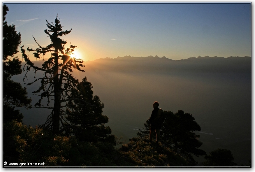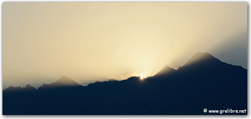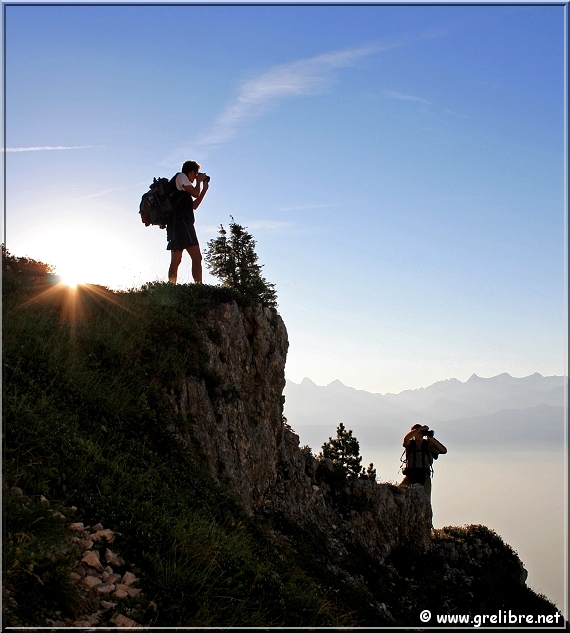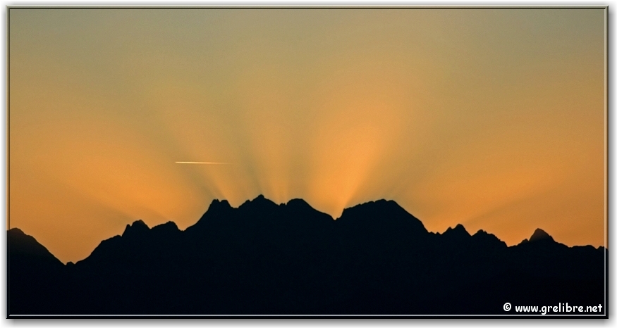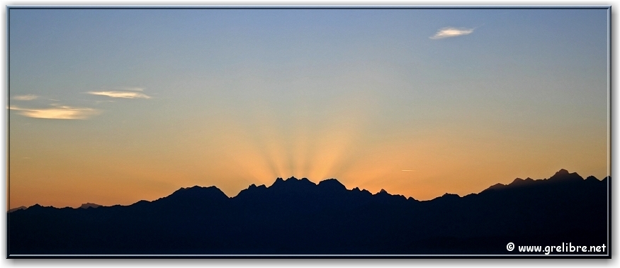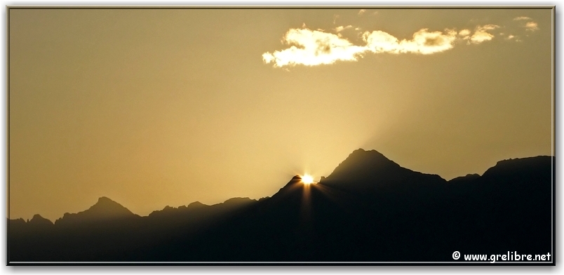 Nouveauté sur grelibre.net : Vous pouvez désormais vous inscrire pour recevoir la photo de la semaine… Alors, n’hésitez pas, rendez-vous sur http://www.grelibre.net ! Attention ! Il y a beaucoup de photos !! Citation… « La lune est le rêve du soleil. » (Paul Klee) Gre in Live… Observation du temps : N’hésitez pas à cliquer sur les photos pour les agrandir dans leur format original… Photo du jour : Lever de soleil sur Belledonne depuis le Pas de Rocheplane (voir plus bas) mardi matin : Quelques nuages brossés sur le Vercors mardi matin : lever de soleil sur Belledonne lundi soir : fin de journée sur Belledonne dimanche après midi sur le plateau de la Molière (Plénouze) dimanche après midi sur le plateau de la Molière (Plénouze), vue sur Belledonne Sortie du jour : Le Pas de Rocheplane depuis Saint Hilaire… Un Pas très sympa à faire mais un peu raide surtout pour la descente (en courant pour ne pas arriver en retard au boulot !) Quelques clichés : Après la difficile montée (raide), les premiers rayons apparaissent Un peu sous le Pas, nous découvrons une petite Arche très sympathique ! Les Parois baignent de lumière… Alors que le soleil est déjà levé, nous terminons le passage du Pas… \b Ca y est Fryz, on arrive !b A peine arrivé en haut du Pas que certains continuent de grimper ! Vue sur le col de Bellefond et les Lances de Malissard Petit zoom avant de redescendre sur le sommet de la Dent de Crolles N’hésitez pas à commenter cet édito en allant écrire un petit mot dans le livre d’Or du site http://www.grelibre.net Les infos… Info du jour : Indice Air: jeudi: 3/10 = Bon Indice Allergique: Demain, jeudi: 4/5 = Mauvais pollens d’ambroisie Les prévisions… La suite ? Petite faiblesse vendredi et samedi… Tendance météo : voir rubrique Tendance Météo sur http://www.grelibre.net IL Y A UN AN… Le 12 septembre 2006 !! |
