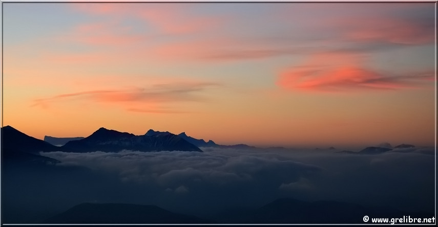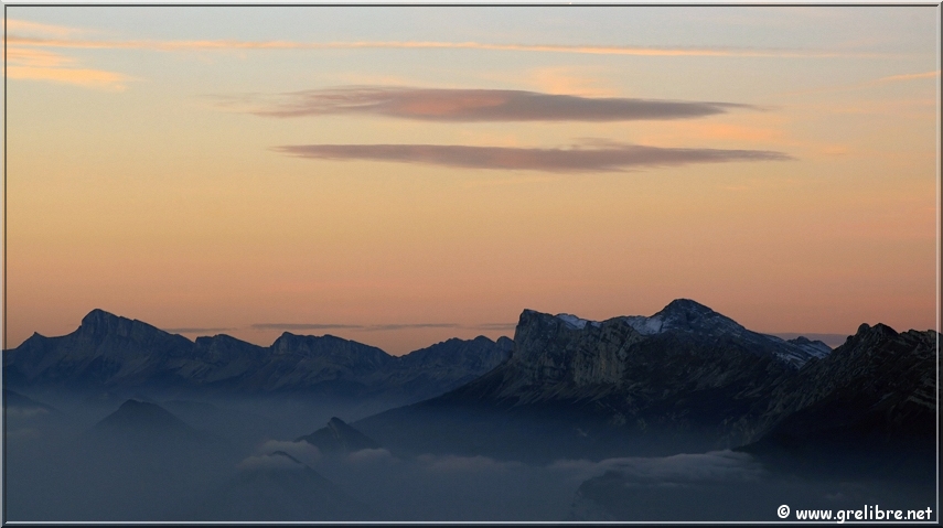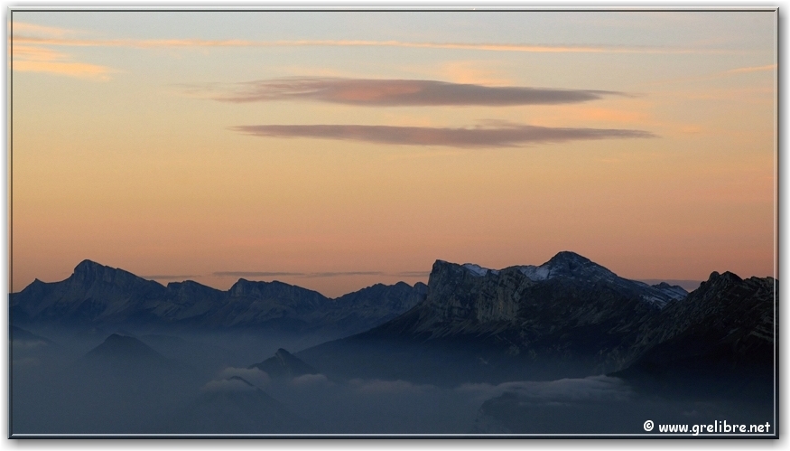jeudi matin : lever de soleil sur la Chartreuse et brumes sur le Grésivaudan